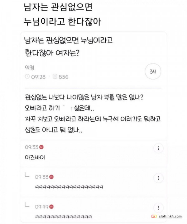 남자는 관심이 없으면 누님이라고 한다잖아 페이지 정보 작성자 pkg 댓글 0건 조회 158회 작성일 26-03-15 02:40 목록 답변 글쓰기 본문 저기요 이전글서울 사람과 지방 사람의 차이점 26.03.15 다음글서울 역세권 아파트 레전드 월세 2000/45 26.03.15 댓글 0 댓글목록 등록된 댓글이 없습니다.