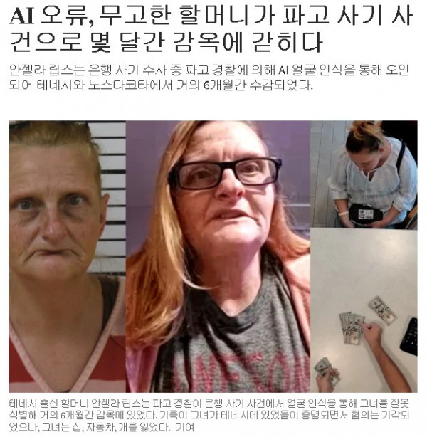 AI 얼굴 인식 오류로 인해 억울하게 6개월간 옥살이 한 여성