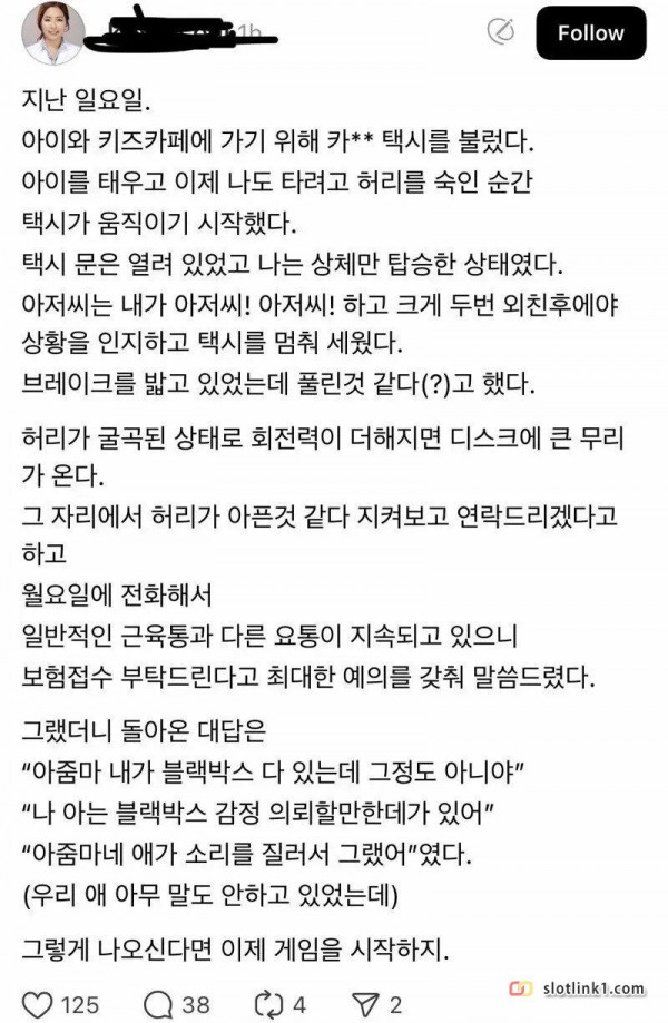 교통사고를 당한 한의사 페이지 정보 작성자 pkg 댓글 0건 조회 126회 작성일 26-04-02 14:04 목록 답변 글쓰기 본문 사실상 대한민국의 교통사고 최고 권위자 중 한 분...ㄷㄷㄷ 이전글전두환 손자, 전우원 근황 26.04.02 다음글청주 빽다방 사건 옹호하는 사람 특징 26.04.02 댓글 0 댓글목록 등록된 댓글이 없습니다.
