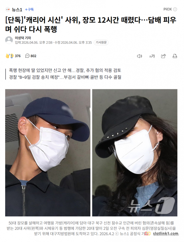 12시간 때렸다…담배 피우며 쉬다 다시 폭행 페이지 정보 작성자 pkg 댓글 0건 조회 245회 작성일 26-04-08 18:03 목록 답변 글쓰기 본문 '캐리어 시신' 사위, 장모 12시간 때렸다 와... 이전글혐) 인간의 몸에서 돌연변이가 나타날 확률 26.04.08 다음글화상회의 중에 신입이 웃음을 터뜨렸다 26.04.08 댓글 0 댓글목록 등록된 댓글이 없습니다.