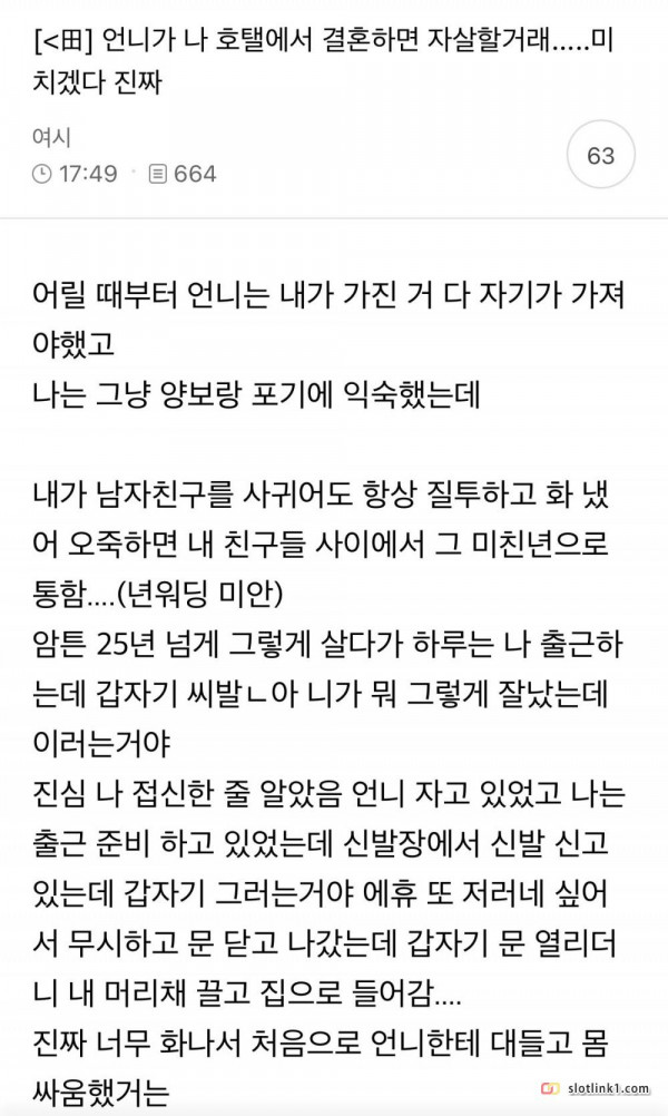 언니가 나 호텔에서 결혼하면 자살할거래 페이지 정보 작성자 pkg 댓글 0건 조회 176회 작성일 26-04-11 16:39 목록 답변 글쓰기 본문 이전글의외로 대다수 여자들이 싫어하는 남자 체형 26.04.11 다음글19년 만에 적자 기록한 의류 브랜드 26.04.11 댓글 0 댓글목록 등록된 댓글이 없습니다.