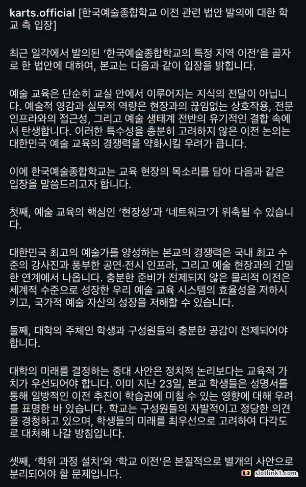 '전라도 이전' 오늘자 한예종 입장문 발표 페이지 정보 작성자 pkg 댓글 0건 조회 148회 작성일 26-04-29 04:31 목록 답변 글쓰기 본문 이전글자영업 더러워서 때려친 사장 근황 26.04.29 다음글나무위키 피셜 조루가 많은 올림픽 종목 26.04.29 댓글 0 댓글목록 등록된 댓글이 없습니다.
