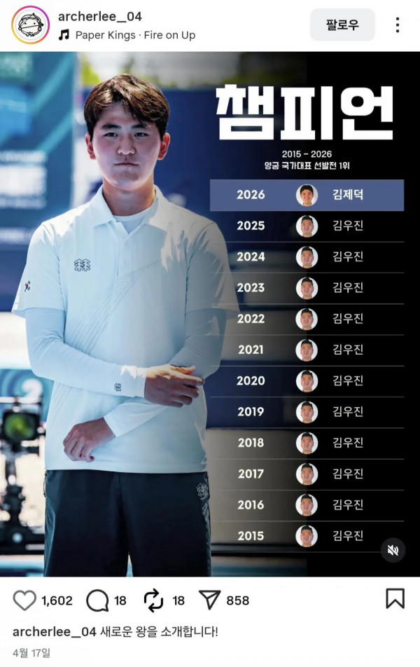 양궁 국가대표 선발전 새로운 왕 페이지 정보 작성자 pkg 댓글 0건 조회 138회 작성일 26-04-29 10:30 목록 답변 글쓰기 본문 2위 김우진 제덕이가 결국에 김우진을 쐈구나 양궁 국가대표 선발전 새로운 왕 이전글공부하다 2억 받아서 오전 공부 망친 공시생 26.04.29 다음글부검의도 눈물 흘리게 만든 20대 미혼모의 죽음 26.04.29 댓글 0 댓글목록 등록된 댓글이 없습니다.