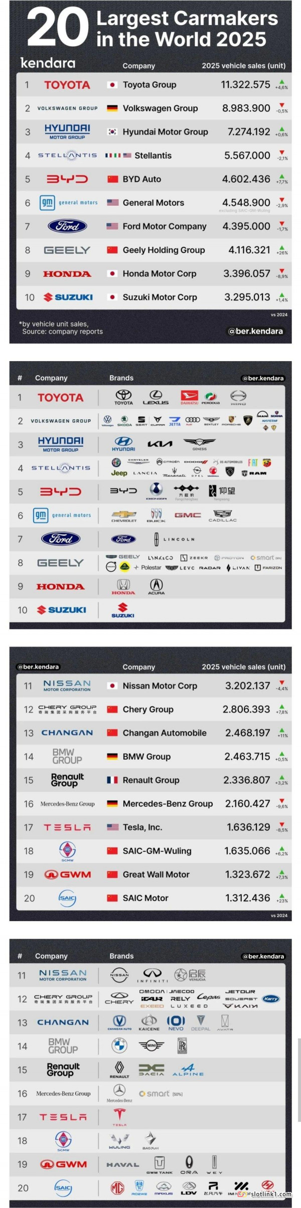 2025년 세계 자동차 제조사 판매량 TOP 20 페이지 정보 작성자 pkg 댓글 0건 조회 183회 작성일 26-03-16 07:10 목록 답변 글쓰기 본문 이전글커피 유튜버가 정해본 믹스커피 티어표 26.03.16 다음글출산율이 낮아야 한다는 의사 형님 26.03.16 댓글 0 댓글목록 등록된 댓글이 없습니다.