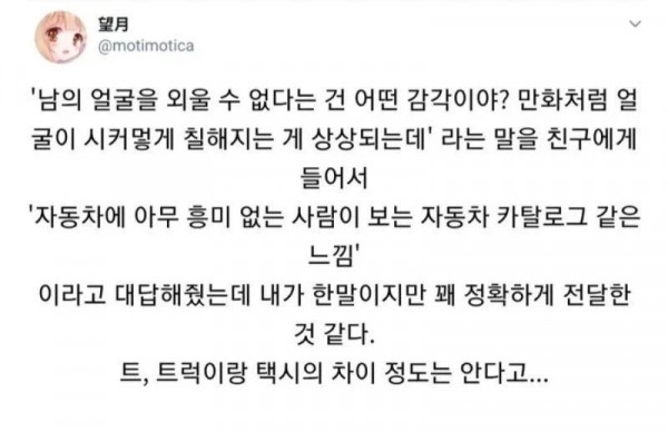 사람 얼굴 못 외우는 사람 특징 페이지 정보 작성자 pkg 댓글 0건 조회 141회 작성일 26-03-19 19:37 목록 답변 글쓰기 본문 다음글태국 택시기사가 본 한중일 관광객 특징 26.03.19 댓글 0 댓글목록 등록된 댓글이 없습니다.