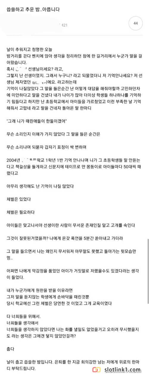 과거에 가르쳤던 제자에게 폭언을 들은 선생님 페이지 정보 작성자 pkg 댓글 0건 조회 212회 작성일 26-04-03 03:39 목록 답변 글쓰기 본문 이전글임산부석 앉았는데 임산부에게 사과 받은 남자 26.04.03 다음글단군 할아버지는 사실 부동산 사기당했던 게 아니었음 26.04.03 댓글 0 댓글목록 등록된 댓글이 없습니다.