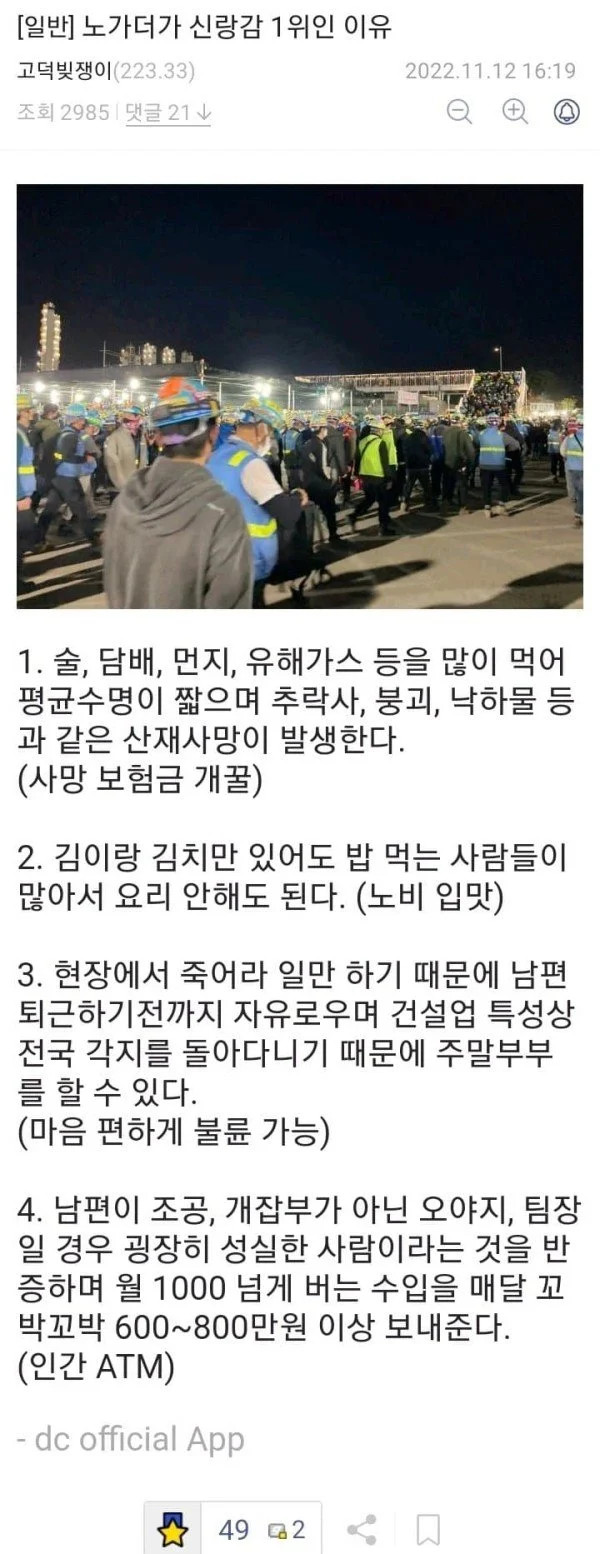 노가다하는 남자가 1등 신랑감인 이유 페이지 정보 작성자 pkg 댓글 0건 조회 166회 작성일 26-04-09 13:35 목록 답변 글쓰기 본문 이전글일요일 오후 결혼이 그렇게 욕먹을일인가요..? 26.04.09 다음글1등 강박주의자 동창의 현재 26.04.09 댓글 0 댓글목록 등록된 댓글이 없습니다.