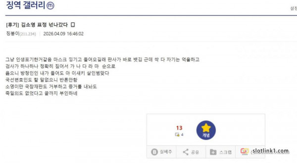 오늘자 모텔살인사건 김소영 재판 방청객 후기 페이지 정보 작성자 pkg 댓글 0건 조회 261회 작성일 26-04-10 06:02 목록 답변 글쓰기 본문 꼭 천벌받길 이전글청라 하나금융본사 조감도와 현실 26.04.10 다음글외국인이 여행와서 찍은 경주 사진들 26.04.10 댓글 0 댓글목록 등록된 댓글이 없습니다.