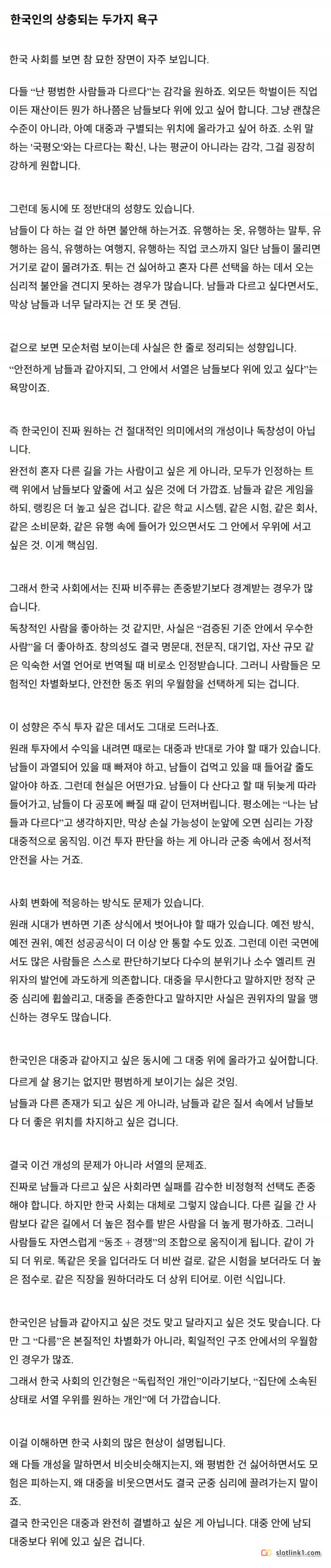 한국인의 상충되는 두가지 욕구 페이지 정보 작성자 pkg 댓글 0건 조회 115회 작성일 26-04-12 10:23 목록 답변 글쓰기 본문 맞는말인듯 이전글10대 청소년, 5층 건물에서 추락해 중태 26.04.12 다음글천재들이 강의를 잘 못하는 이유 26.04.12 댓글 0 댓글목록 등록된 댓글이 없습니다.