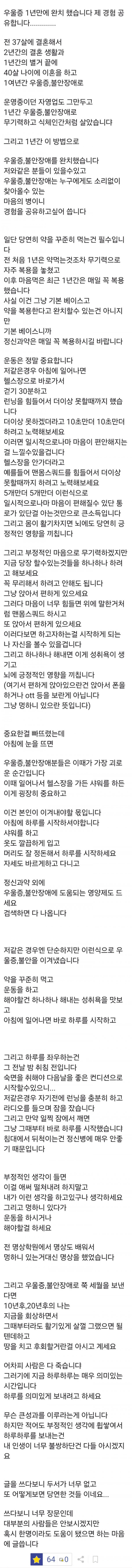 우울증 1년만에 완치한 사람의 경험 공유 페이지 정보 작성자 pkg 댓글 0건 조회 271회 작성일 26-04-12 23:55 목록 답변 글쓰기 본문 의지와 노력으로 완치 하신듯 싶네요. 출처 - 디시 정신과갤 이전글흙수저 대기업인데 세금은 세금대로 때고 힘들다 26.04.12 다음글남자들은 공무원 하지마라는 공무원 26.04.12 댓글 0 댓글목록 등록된 댓글이 없습니다.