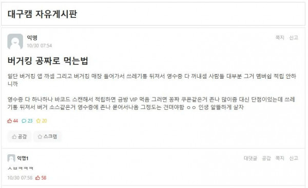 경북대 학생이 알려주는 "버거킹 공짜로 먹는법" 페이지 정보 작성자 pkg 댓글 0건 조회 220회 작성일 26-04-15 19:44 목록 답변 글쓰기 본문 와 이전글하이닉스 성과급 27억이 배아프다는 사람 26.04.15 다음글한국인은 평생 무비자로 거주가 가능하다는 유럽 국가 26.04.15 댓글 0 댓글목록 등록된 댓글이 없습니다.