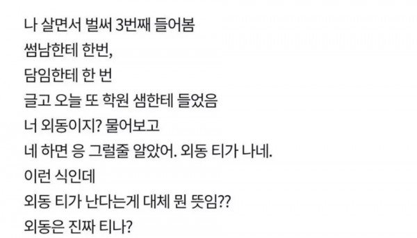 외동 티가 난다는게 대체 뭔 뜻임? 페이지 정보 작성자 pkg 댓글 0건 조회 120회 작성일 26-02-22 17:33 목록 답변 글쓰기 본문 일단 좋은 뜻은 아닌 듯 외동 티가 난다는게 대체 뭔 뜻임? 이전글한국 수능 역사상 가장 쉬웠던 문제 26.02.22 다음글한때 말 많았던 정부상징 로고 통합 26.02.22 댓글 0 댓글목록 등록된 댓글이 없습니다.