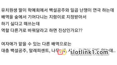 학예회 백설공주 연극에서 딸이 지렁이 역할이라면? 페이지 정보 작성자 fiveou 댓글 0건 조회 601회 작성일 26-03-17 15:01 목록 답변 글쓰기 본문 아 이건 좀..감정이입되네요 ㅠㅠ 이전글 트럼프 : 나는 쿠바를 차지하는 영광을 누릴 것 26.03.17 다음글 트럼프 : 전직 미 대통령과 통화했고 칭찬받았다 26.03.17 댓글 0 댓글목록 등록된 댓글이 없습니다.