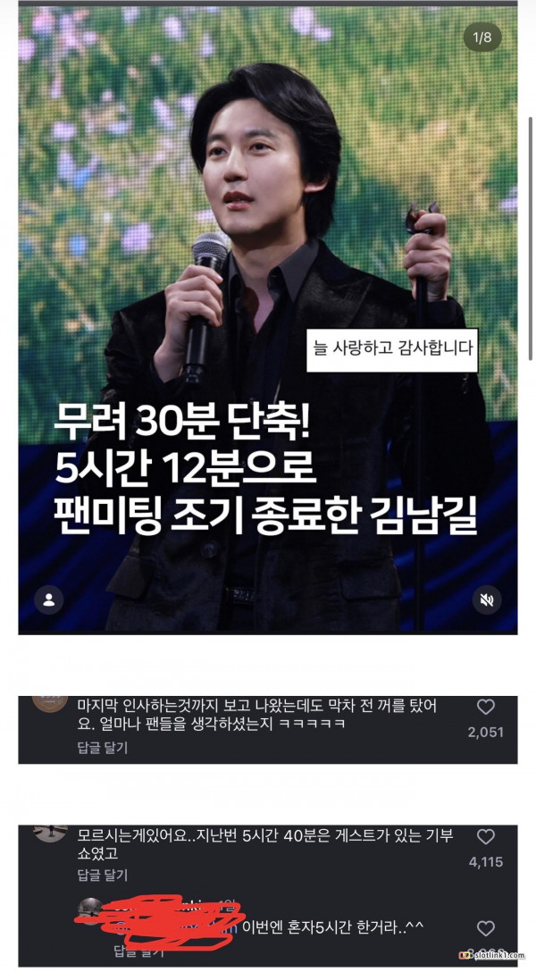 김남길 팬미팅이 지난번보다 30분 짧게 조기종료 했다고 함 페이지 정보 작성자 fiveou 댓글 0건 조회 205회 작성일 26-03-30 21:22 목록 답변 글쓰기 본문 어? 이전글 트럼프 반대 시위중 만난 독일계 미국인 26.03.30 다음글 트럼프 반대 시위중 만난 독일인 26.03.30 댓글 0 댓글목록 등록된 댓글이 없습니다.