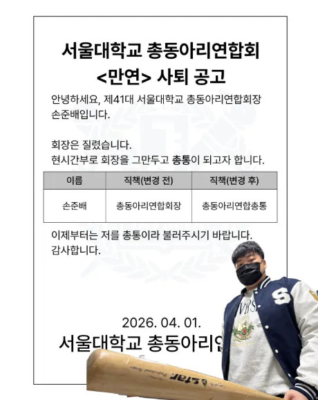 서울대학교 총동아리연합회장 사퇴 페이지 정보 작성자 fiveou 댓글 0건 조회 146회 작성일 26-04-01 18:49 목록 답변 글쓰기 본문 대신 총통으로 취임 이전글 관공서에서 문자 발송 후 사과문 띄움 26.04.01 다음글 스팀 인디게임 대참사 (영구 무료 확정) 26.04.01 댓글 0 댓글목록 등록된 댓글이 없습니다.