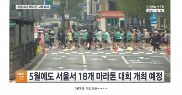 서울시 4월에만 마라톤 대회 20회 개최. 페이지 정보 작성자 fiveou 댓글 0건 조회 166회 작성일 26-04-06 16:16 목록 답변 글쓰기 본문 서울 시민들 수고염. 이전글 흰수염 해적당 잔당 체포 26.04.06 다음글 국세청이 직접 오피셜로 정해준 명칭. 26.04.06 댓글 0 댓글목록 등록된 댓글이 없습니다.