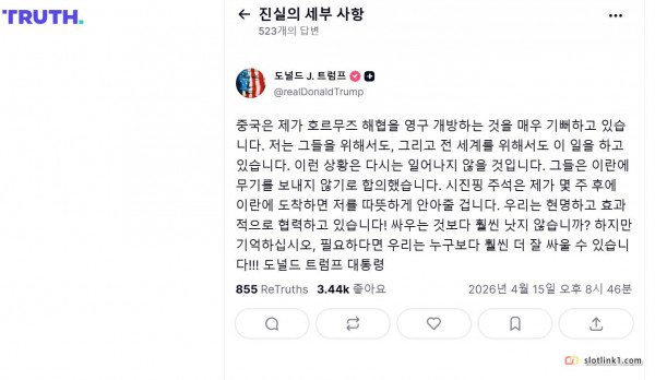 트럼프 "호르무즈 해협 영구적 개방... 페이지 정보 작성자 fiveou 댓글 0건 조회 264회 작성일 26-04-15 22:09 목록 답변 글쓰기 본문 너때문에 막힌거였었잖아..역시 레드 트럼프... 이전글 새로운 곤경에 빠진 로버트 켈리씨. 26.04.15 다음글 2년 넘게 강제 한국 살이 예정인 한 외국인 유튜버 26.04.15 댓글 0 댓글목록 등록된 댓글이 없습니다.