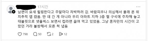 남편이 바람피우는 줄 알고 의심한 아내 페이지 정보 작성자 pkg 댓글 0건 조회 144회 작성일 26-04-27 15:23 목록 답변 글쓰기 본문 혼자만의 동굴이 필요했던 남편.. 남편이 바람피우는 줄 알고 의심한 아내 이전글주민센터에서 짬처리 당하는 공무원 26.04.27 다음글딸이 트랜스젠더를 포기한 이유 26.04.27 댓글 0 댓글목록 등록된 댓글이 없습니다.