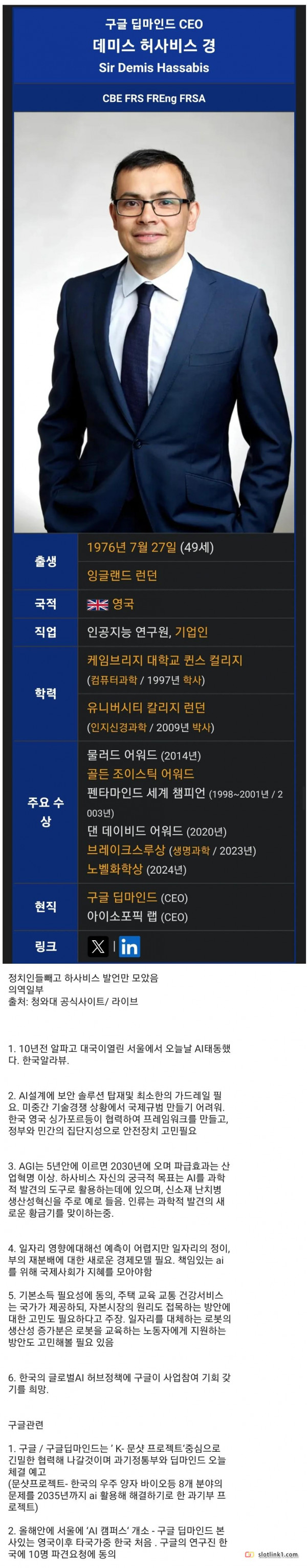 구급 딥 마인드 CEO가 어제 한국에서 했던 발언들 정리 페이지 정보 작성자 pkg 댓글 0건 조회 157회 작성일 26-04-28 19:55 목록 답변 글쓰기 본문 이전글실종자가 많은게 이해된다는 호주의 오지 26.04.28 다음글어제자 쿠팡 아이패드 대란 ㄷㄷ 26.04.28 댓글 0 댓글목록 등록된 댓글이 없습니다.