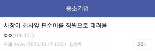 회사앞 편순이 취직시킨 사장 페이지 정보 작성자 pkg 댓글 0건 조회 129회 작성일 26-04-06 16:09 목록 답변 글쓰기 본문 이전글KT도 인터넷 설치·수리 업무 '외국인'에 맡긴다 26.04.06 다음글간부도 못 건드린 190cm 괴물 상병 26.04.06 댓글 0 댓글목록 등록된 댓글이 없습니다.