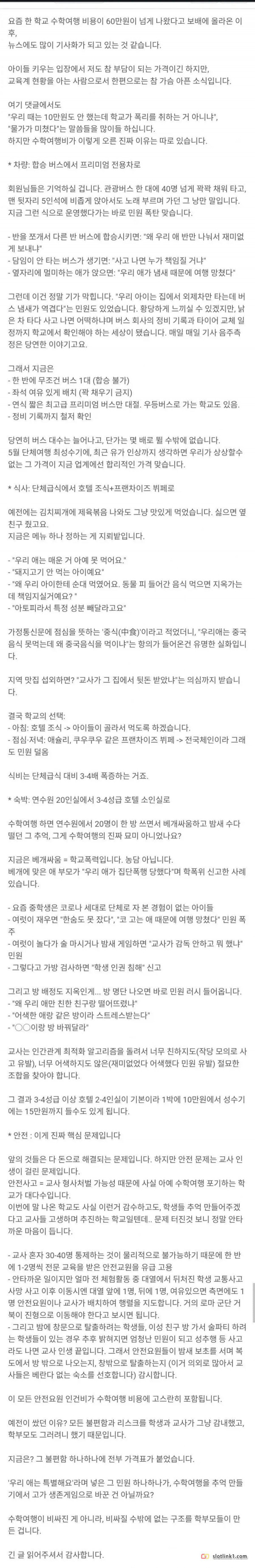 강릉 2박3일 수학여행 비용이 60만원인 이유 페이지 정보 작성자 pkg 댓글 0건 조회 184회 작성일 26-04-16 16:13 목록 답변 글쓰기 본문 이전글크롬 확장 프로그램으로 HWP 편집 및 뷰어 출시 26.04.16 다음글캠핑카 규제가 나날이 빡세지는 이유 26.04.16 댓글 0 댓글목록 등록된 댓글이 없습니다.