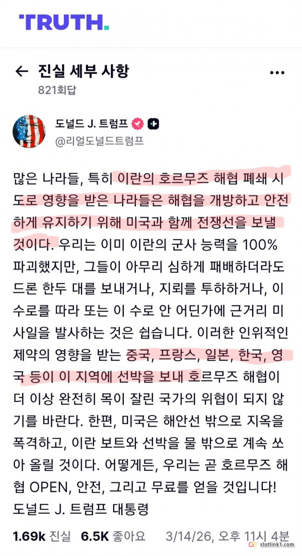 트럼프 : 호르무즈 해협에 한국이 군함을 보낼 것이다 페이지 정보 작성자 fiveou 댓글 0건 조회 443회 작성일 26-03-15 00:14 목록 답변 글쓰기 본문 네? 저희가요? 왜요? 이전글 나 오늘 우울해서 국수 삶았어 26.03.15 다음글 포코피아 대흥행하니 바로 나오는 굿즈들 26.03.15 댓글 0 댓글목록 등록된 댓글이 없습니다.