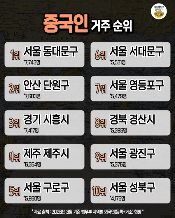 국내 외국인별 많이 사는 지역 순위 페이지 정보 작성자 pkg 댓글 0건 조회 144회 작성일 26-04-24 06:28 목록 답변 글쓰기 본문 이전글인도에서 파는 3만원짜리 랍스터 정식 26.04.24 다음글일본이 자국 여행으로 만족 하는 이유 26.04.24 댓글 0 댓글목록 등록된 댓글이 없습니다.