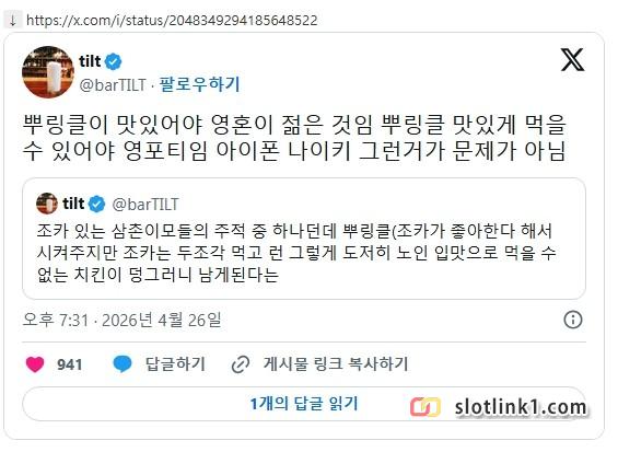 뿌링클이 맛있어야 영혼이 젊은 것임 페이지 정보 작성자 pkg 댓글 0건 조회 174회 작성일 26-04-27 21:20 목록 답변 글쓰기 본문 이전글불법주차 참교육 현장 26.04.27 다음글사장님 취소해주세요 26.04.27 댓글 0 댓글목록 등록된 댓글이 없습니다.