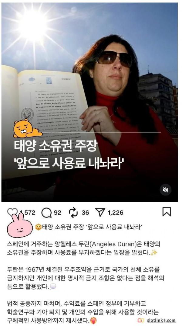태양 소유권 주장 '앞으로 사용료 내놔라' 페이지 정보 작성자 pkg 댓글 0건 조회 159회 작성일 26-04-28 18:41 목록 답변 글쓰기 본문 이전글PS5 국가별 가격 및 인상률 비교표 26.04.28 다음글폴드8, 폴드8 와이드, 플립8 모형 유출샷 26.04.28 댓글 0 댓글목록 등록된 댓글이 없습니다.