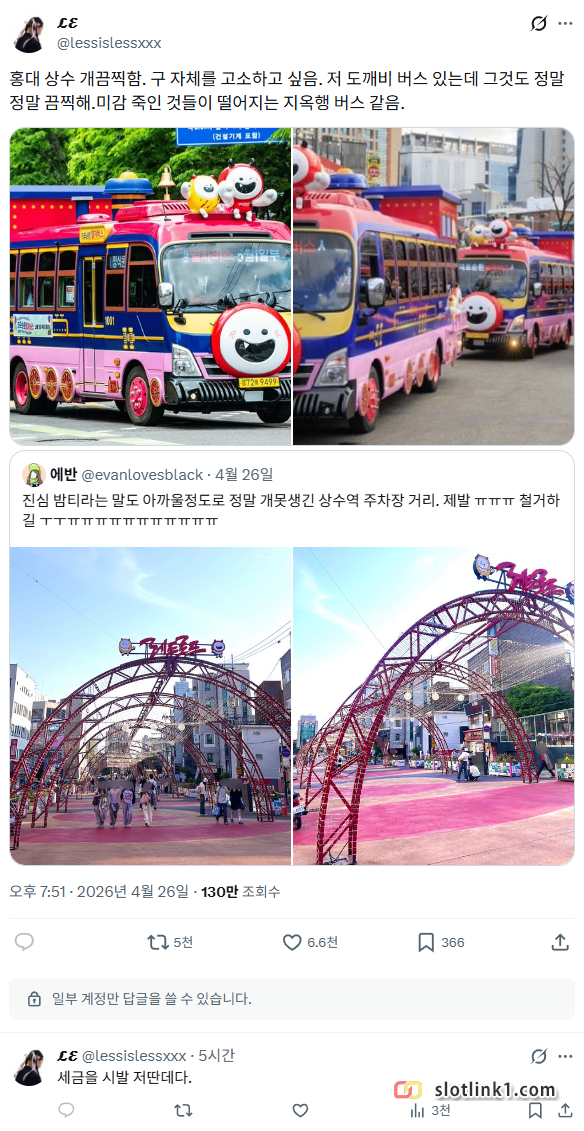 촌스럽다고 반응 안좋은 서울 홍대상수 구역 공공디자인들 페이지 정보 작성자 pkg 댓글 0건 조회 158회 작성일 26-04-28 18:42 목록 답변 글쓰기 본문 이전글어제자 쿠팡 아이패드 대란 ㄷㄷ 26.04.28 다음글PS5 국가별 가격 및 인상률 비교표 26.04.28 댓글 0 댓글목록 등록된 댓글이 없습니다.