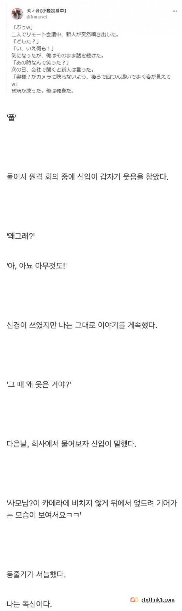 회사 신입이 갑자기 웃은 이유 페이지 정보 작성자 pkg 댓글 0건 조회 154회 작성일 26-04-29 13:02 목록 답변 글쓰기 본문 이전글한때 한국에서 난리났던 푸바오 근황 26.04.29 다음글같은 대사지만 캐릭터에 따라 느낌이 다름 26.04.29 댓글 0 댓글목록 등록된 댓글이 없습니다.