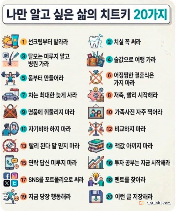 나만 알고 싶은 '삶의 치트키' 20개 페이지 정보 작성자 pkg 댓글 0건 조회 209회 작성일 26-04-30 22:40 목록 답변 글쓰기 본문 1번이 썬크림 ㅋㅋ 20번으로 마무리 이전글경상남도 사는 사람들 필독 26.04.30 다음글집주인이 세입자 허락없이 집 팔아도됨? 26.04.30 댓글 0 댓글목록 등록된 댓글이 없습니다.