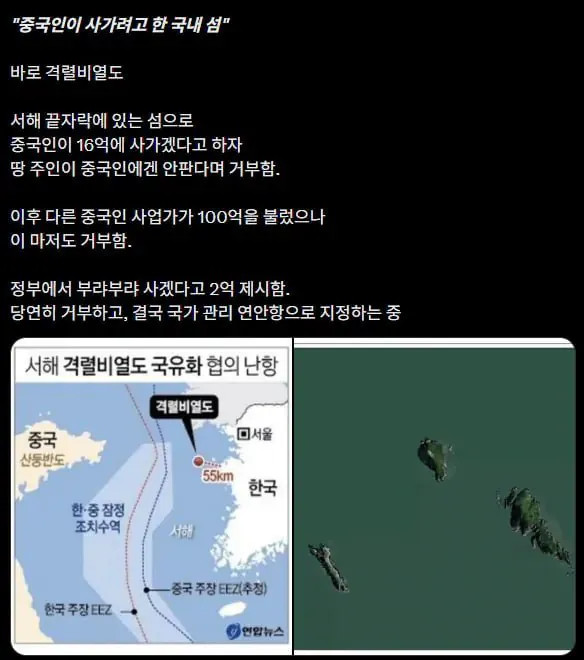 중국인이 사가려고 한 서해 국내 섬 페이지 정보 작성자 pkg 댓글 0건 조회 335회 작성일 26-03-28 15:42 목록 답변 글쓰기 본문 주인 누구냐.. 중국인이 사가려고 한 서해 국내 섬 이전글2025년 완성차 브랜드별 판매량 순위 26.03.28 다음글전라도 여수 식당 '라도9900' 지리는 밥상 26.03.28 댓글 0 댓글목록 등록된 댓글이 없습니다.