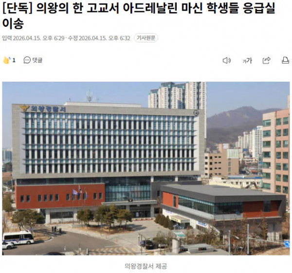 고교서 아드레날린 마신 학생들 응급실 이송 페이지 정보 작성자 pkg 댓글 0건 조회 136회 작성일 26-04-16 11:04 목록 답변 글쓰기 본문 https://n.news.naver.com/mnews/article/666/0000103446?sid=102 이전글현재 난리난 신규 AI 이미지생성 모델 26.04.16 다음글사람마다 진짜 갈린다는 통통 기준 26.04.16 댓글 0 댓글목록 등록된 댓글이 없습니다.