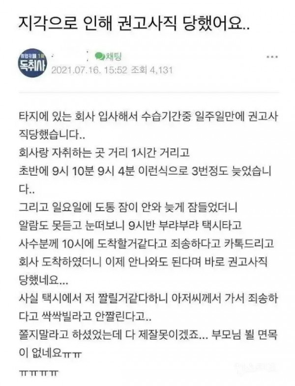 잦은 지각으로 권고사직 당한 직장인ㄷㄷ 페이지 정보 작성자 pkg 댓글 0건 조회 136회 작성일 26-04-22 13:58 목록 답변 글쓰기 본문 잦은 지각으로 권고사직 당한 직장인ㄷㄷ 이전글나치가 평가한 중동인들 26.04.22 다음글21세기 남겨진 유언 중 간지 원탑 26.04.22 댓글 0 댓글목록 등록된 댓글이 없습니다.