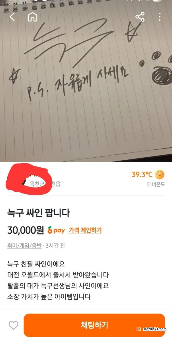 당근마켓에 올라온 늑구 친필 싸인 가격 페이지 정보 작성자 pkg 댓글 0건 조회 145회 작성일 26-04-22 16:25 목록 답변 글쓰기 본문 이전글우리나라 교도소 근황ㄷㄷ 26.04.22 다음글유럽에서 유대인보다 더 미움받은 민족 26.04.22 댓글 0 댓글목록 등록된 댓글이 없습니다.