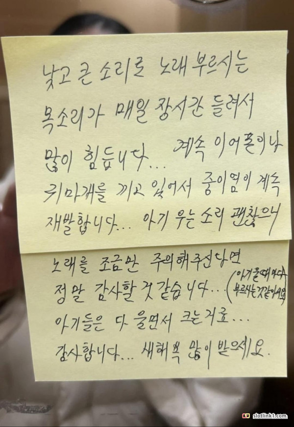 [유머] 애 우는 집 부모가 받은 항의문.jpg 페이지 정보 작성자 fiveou 댓글 0건 조회 260회 작성일 26-02-21 18:55 목록 답변 글쓰기 본문 애 울음소리보다 니 노래 소리를 더 못참겠다!! 이전글[유머] 옛날엔 왜 장자상속을 했을까 26.02.21 다음글[유머] (소신발언) 연휴 기간 집보다 회사가 더 편함... 26.02.21 댓글 0 댓글목록 등록된 댓글이 없습니다.